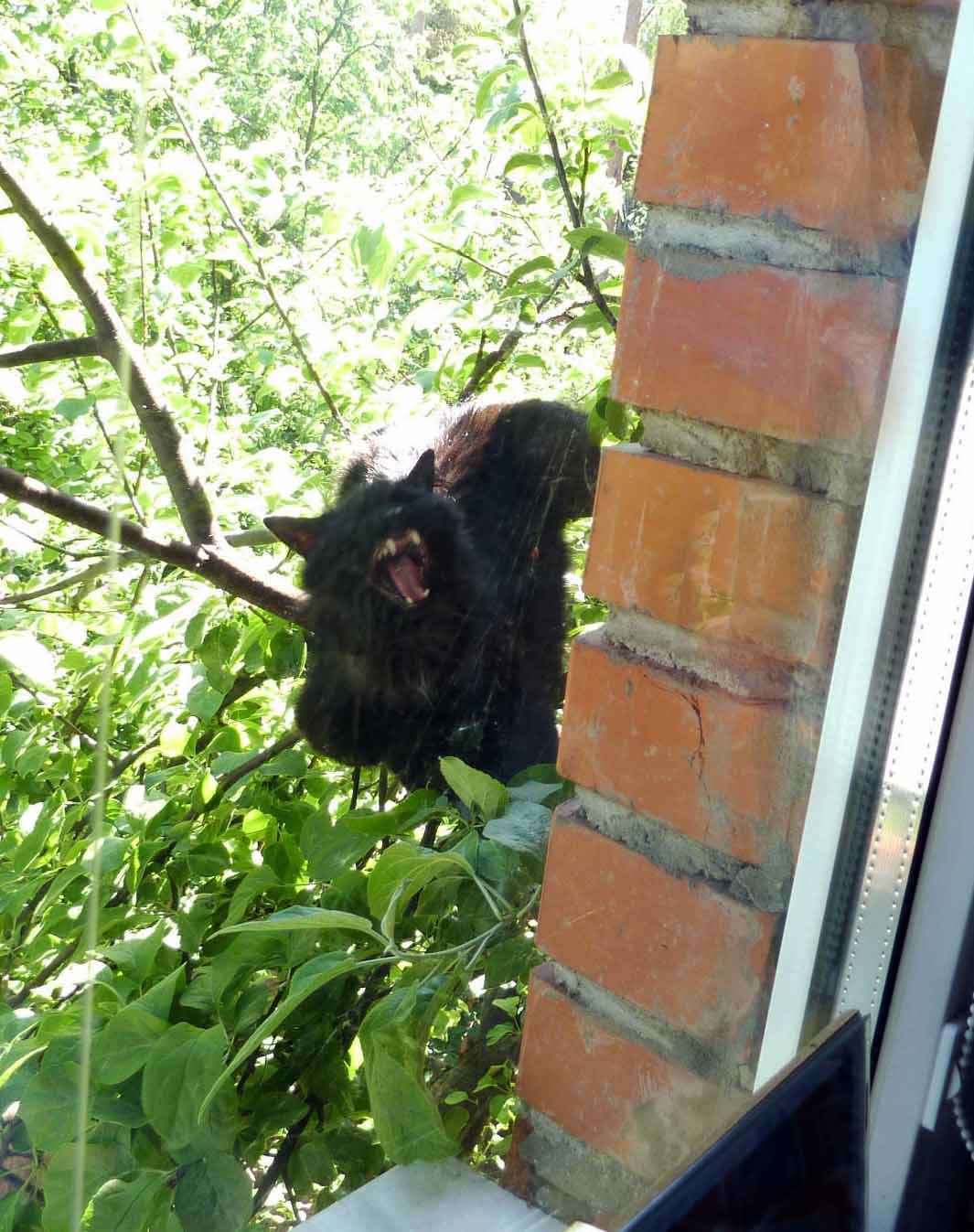 Ваша Е-тка зря такая доверчивая, улетает по своим делам, мол, последите за моим гнездом пока... Оторвались мы от виртуального окна, заглянули в реальное, а там на ветке вот такое чучело сидит, за птичками охотится. Эй, Е-тка, береги яйца!