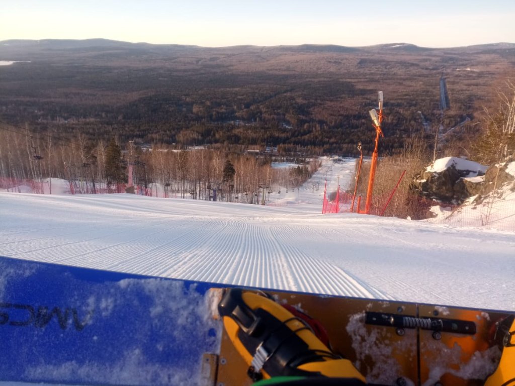 Тоже катанули в понедельник успели до тренировок лыжников,на верху весь снег сдуло