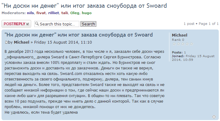 SWOARD Snowboards писал(а):Предоплата на сезон 2014/15 взиматься не будет.