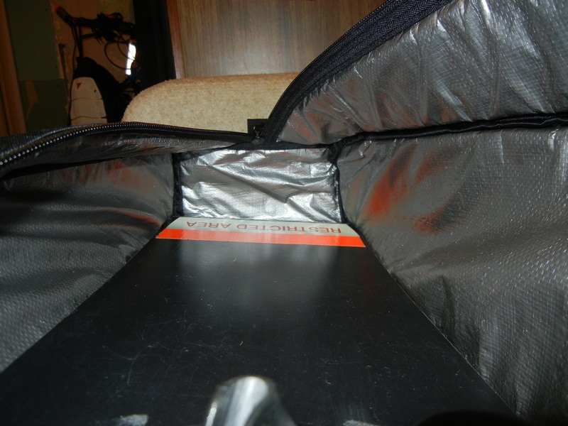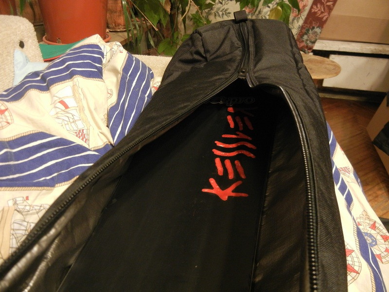Хороший чехол для транспортировки снаряжения, по длине влезет: легко - 188см, длинее сложнее просуть в молнию, сообразите как засунуть - 192 см). Для 185 Кесслера торцевая стенка в аккурат по ширине хвоста и сужение хвоста сделано под чехол - надо будет пришить две стяжки для центровки доски.
