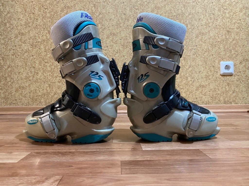 Ботинки Raichle 125, размер 22.5, колодка 253. Состояние - практически новые, попробовали, не понравилось. Внутренники запекаемые Raichle размер 23. Запекались один раз. Катались столько же. 15000р.