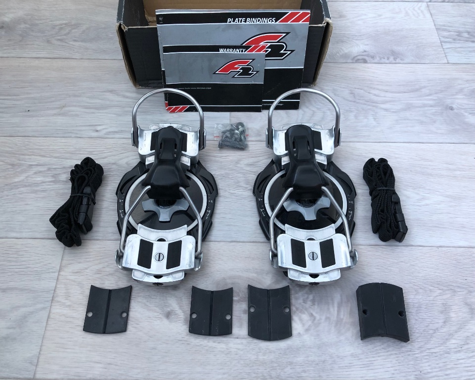 Продам крепления F2 race cnc размер M в хорошем состоянии, комплектность на фото, высокие клинья в комплекте (на фото)