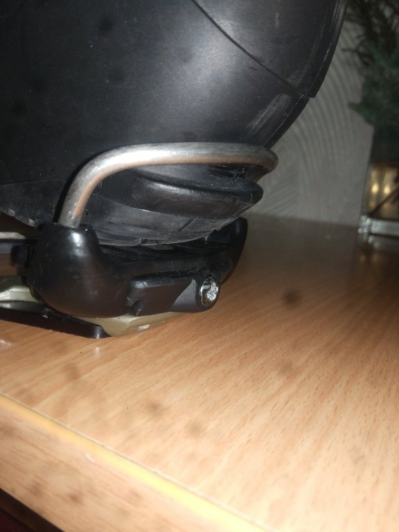 Сдается мне , что ботинок вставлен под наклоном..... На фото не видно как ботинок стоит. только дужку