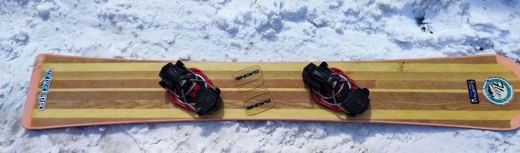От жесткого комплекта осталась доска Флинт, на сколько помню 164 длина(точнее могу измерить если кого заинтересует) и радиус 9.5???? точно не помню.... Из дефектов только от лыжника слой лака поднят, на фото видно на хвосте.