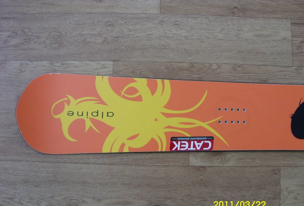 Доска каталась с крепежом F2, там куда наклеена наклейка CATEK был небольшой косячок топшита сбоку пару сантиметров, совсем небольшой, он отремонтирован в сервисе. Доска абсолютно живая, без каких либо косяков влияющих на ее первоначальные характеристики. Каталась как вторая, совсем не много.