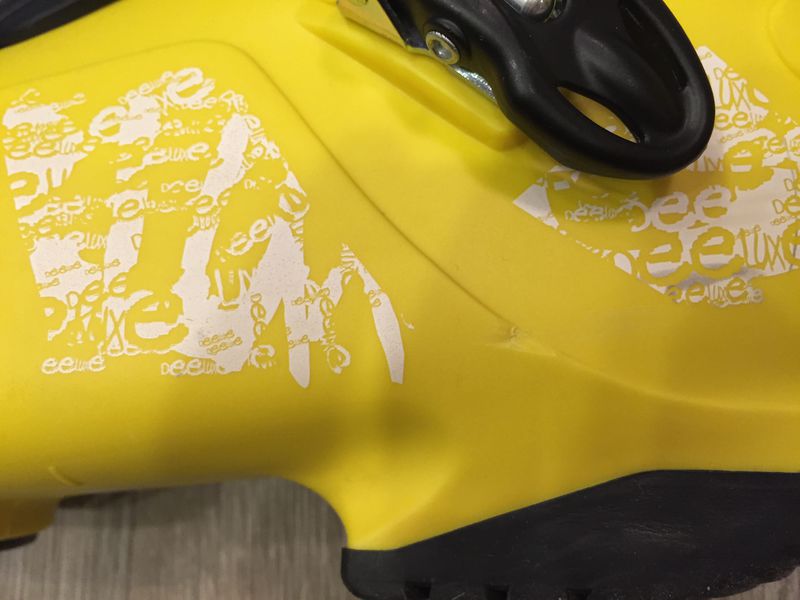 - соскочил пластмассовый язычок с троса на левом ботинке;