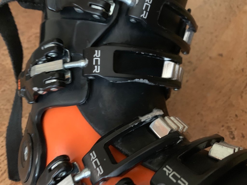 Немного потерлись клипсы на правом ботинке друг об друга (см. фото). Проблема известная у ботинок.