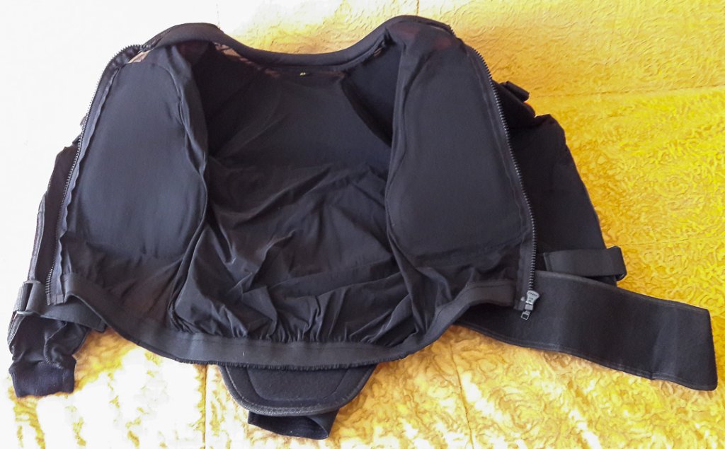 Новая черепаха. Защита спины с поясом отстегиваются от куртки, можно использовать отдельно. Размер XL подходит на 50-52.
