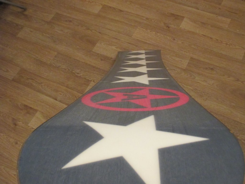 Доска в хорошем состоянии ,база ,канты целые, на хвосте есть стандартные эксплуатационные коцки.