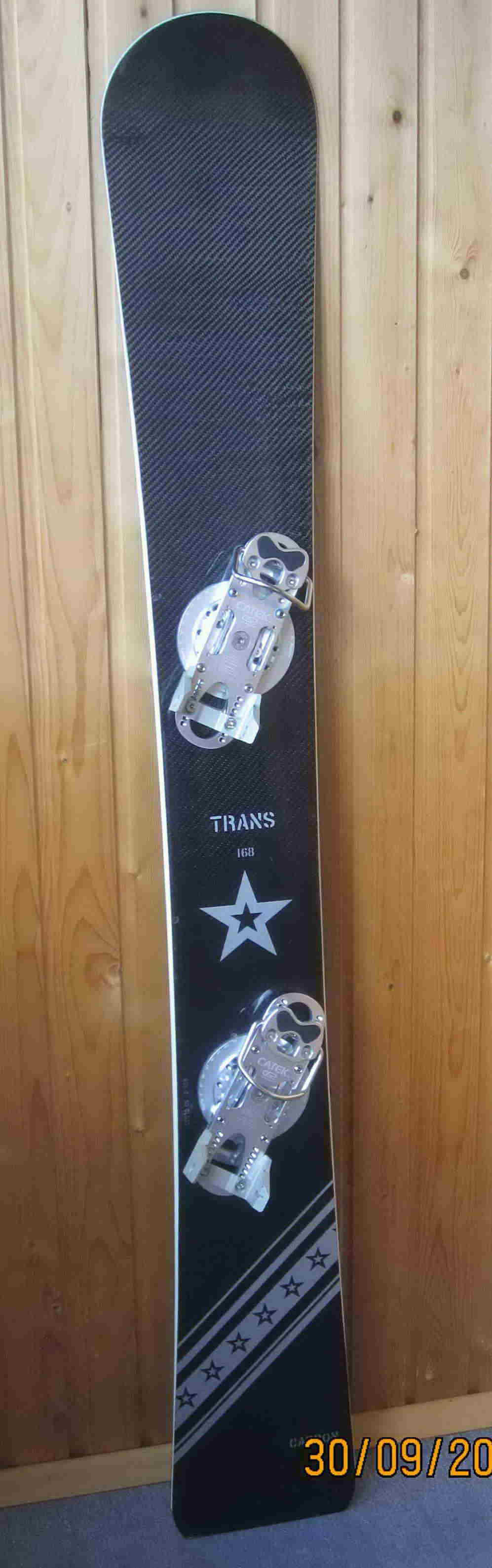 Продаётся Trans Carbon. Ростовка 168. Нос - 230 мм, талия - 173 мм, хвост - 230 мм. Радиус бокового выреза - 10,5 м. Расчитана на вес райдера - 75 - 85 кг. Катана 4 раза. Канты не точились. Имеется 2 небольших скола лака на топшите в районе креп. Скользяк повреждений не имеет, небольшие царапинки. Цена - 10 т.р.