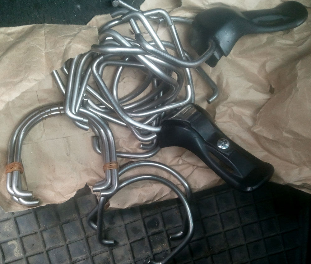 Итак, те кто получил дужки. Рано радоваться, они не встают на места. Берем балгарку и надфили - доходим сырой продукт. Задние все три дужки категорически отказываются залезать. Также они пластилиновые, после установки и снятия сохранили разогнутую форму, не как родные, чем обернется для пластиковых упоров - вопрос.