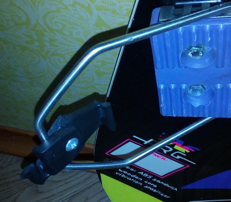 Пластиковый язычок и железная дуга здесь раздельные элементы. Крепления стояли так, что язычок захватывал пятку ботинка.