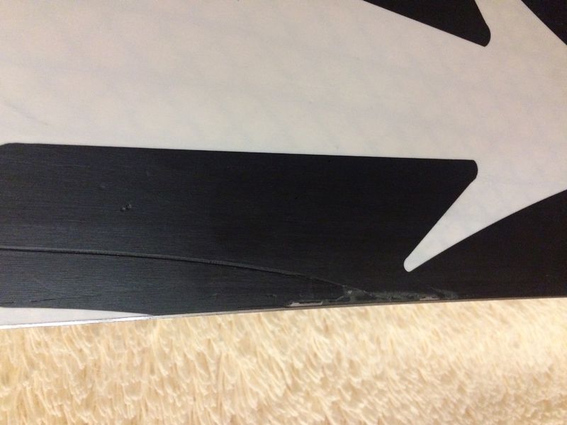 а что тебя пугает в скользяке? на всю доску единственная царапина и нет кусочка пластика у канта размером 3-4 мм. два года с этим откатался без проблем, так как все заделано и не разрушается.