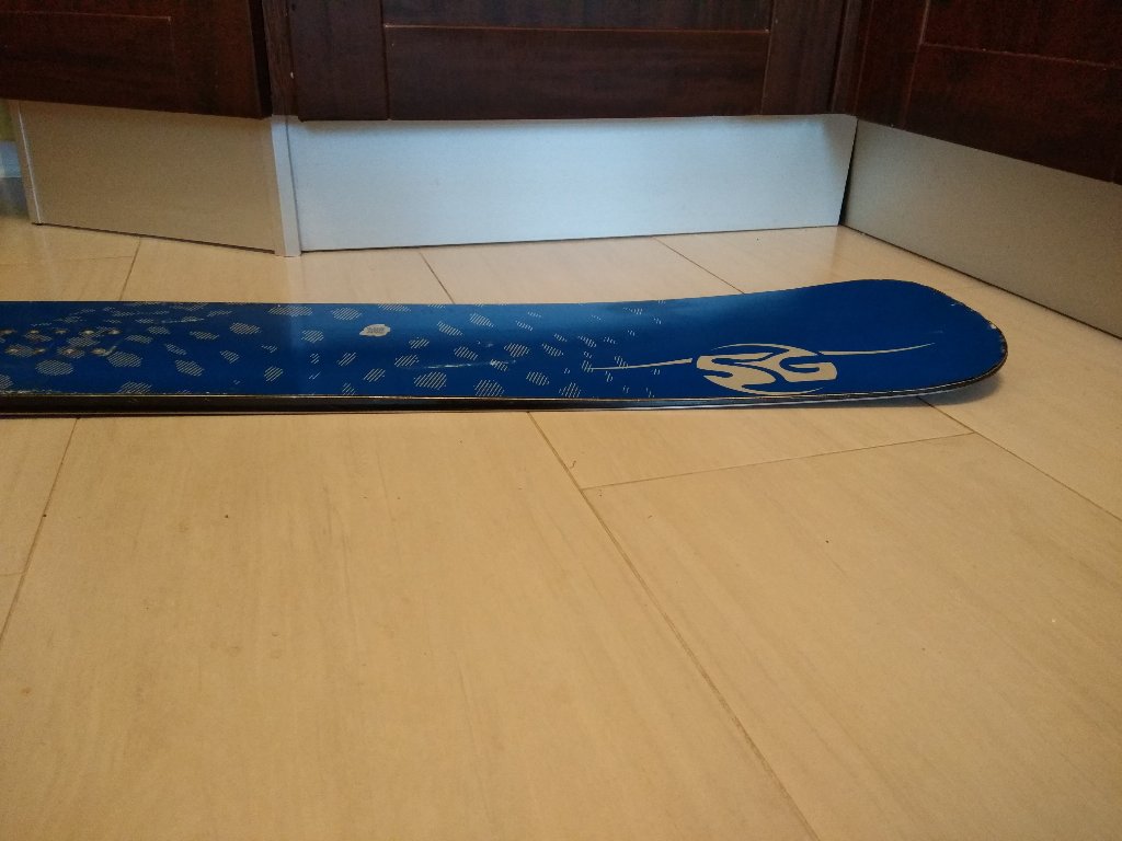 Скользяк, топшит в хорошем состоянии. Кантов около 1,5 мм. Увеличен рокер. Под 95 кг. стабильная и маневренная.