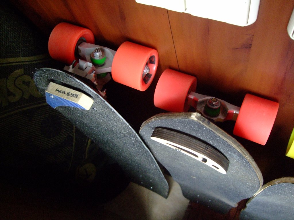 Скейт собирался и настраивался для себя, почему есть запасные кингпины, но, с оказией, появился Калибер на ГОГ'ах.
