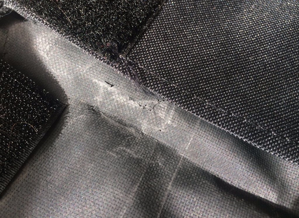 У второго чехла вверху снаружи потертость ткани от хранения в шкафу (был бок торчащий) + внутри наверху потрескалось так же как на первом внтуреннее покрытие и следы от царапок.