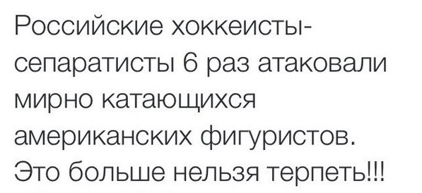 Об этом заявила спикер Государственного департамента США Дж.Псаки: "Этот матч не имел ничего общего с настоящим хоккеем. В 21 веке нельзя играть в хоккей так, как будто на дворе век 20-й. Имперские амбиции сборной России наглядно продемонстрированы в самих методах ведения игры, как это было в худшие годы существования СССР: грязная шайбовая карусель, которую устроила команда России в ворота сборной США и блокирование демократических шайб в свои ворота, это попытка пересмотра сложившегося статуса-кво и угроза общеевропейской безопасности."