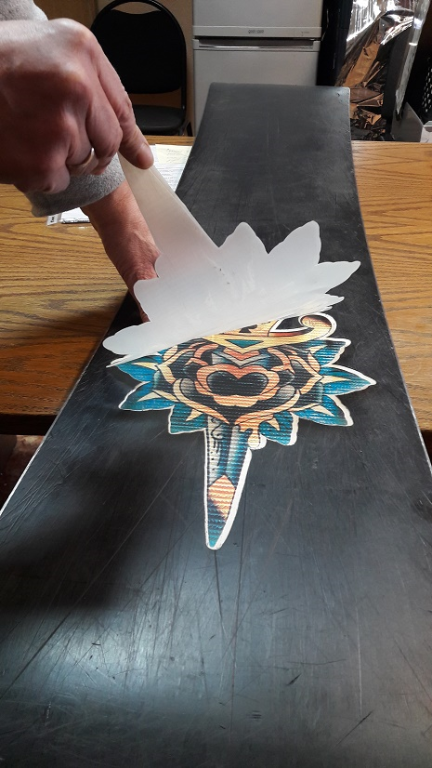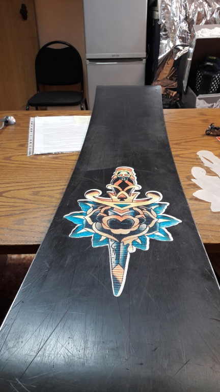 Парни всем привет, сообстна вопросик: имеется доск - "А-сноуборд", можно ли вклеить какой нибудь материал, взамен отвалившейся плёнке, сама плёнка уже испорчена,на фото всё видно.