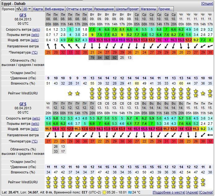 Nuta писал(а):Летим в Дахаб с 18 по 28 апреля. Карверы, которые винд и кайтсерферы, присоединяйтесь к компании. Лето наступило и звездный прогноз :smile: